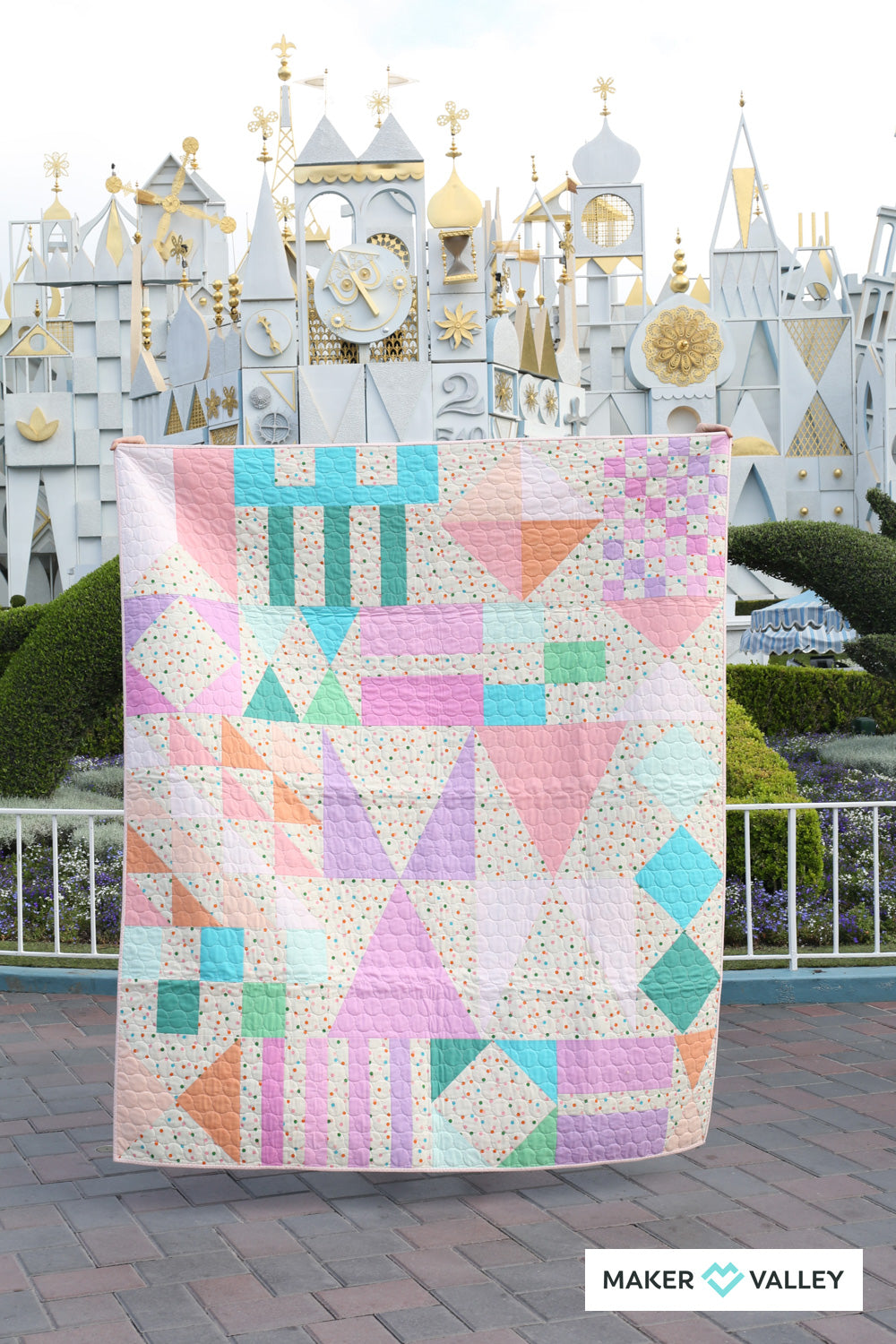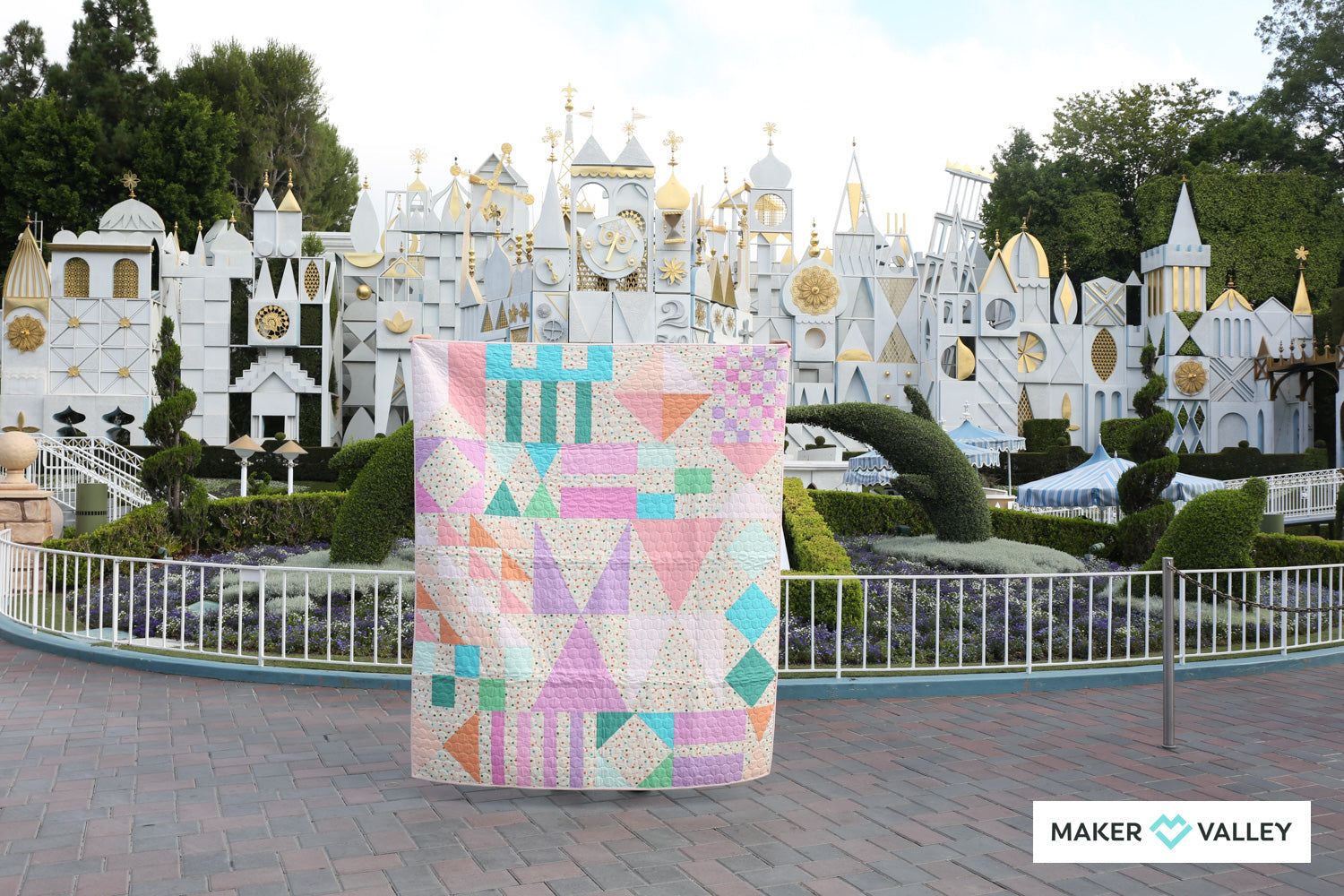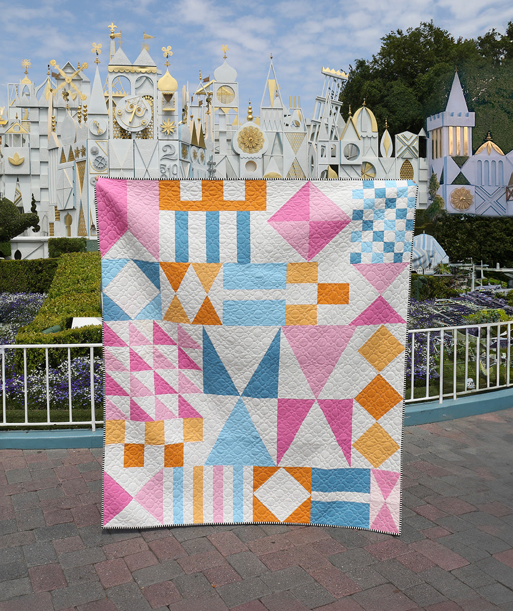They call it the happiest cruise that ever sailed, but I’m officially calling this the happiest quilt pattern that ever was. Modern Mosaic is my fabric love letter to Disneyland’s It’s a Small World ride and the brilliant art of my creative hero, Mary Blair.